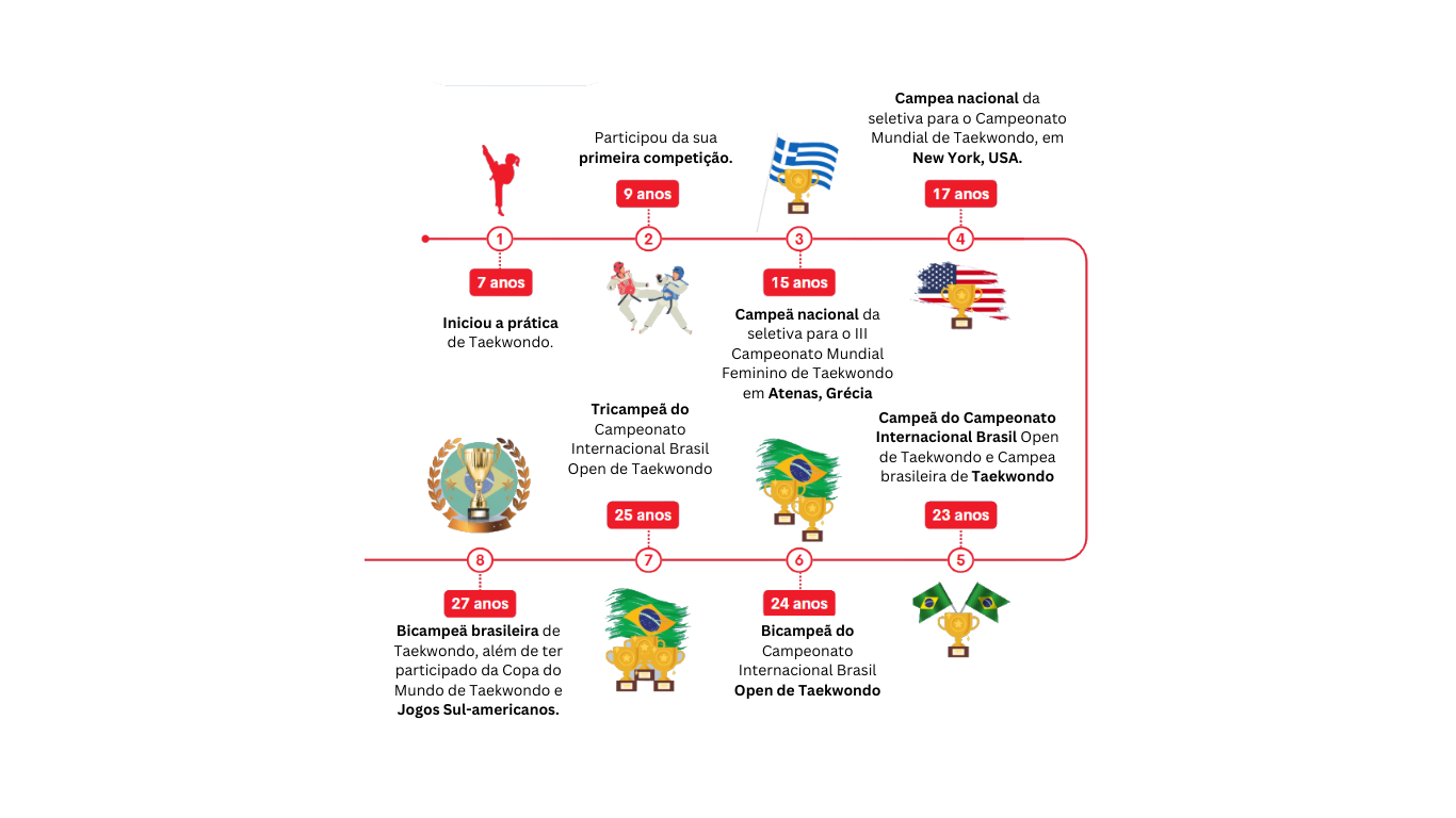 Desde os 7 anos, Manuela vive o Taekwondo. Aos 9, já competia e, dali em diante, sua trajetória foi marcada por vitórias que ecoaram dentro e fora do país: